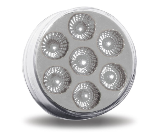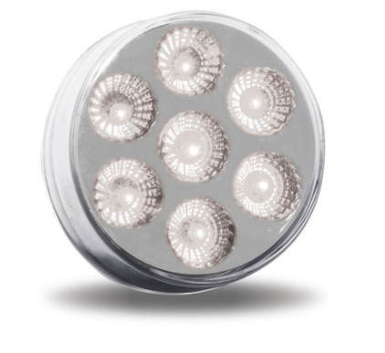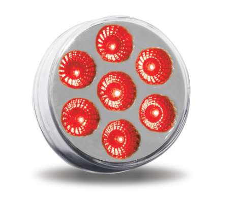 1 2" Round RED marker light with BACK-UP and clear lens. 7 diodes for bright, dependable performance. Features sonically sealed, waterproof lens and housing in a single unit. All-weather molded plastic housing and durable lens protect against corrosion.
