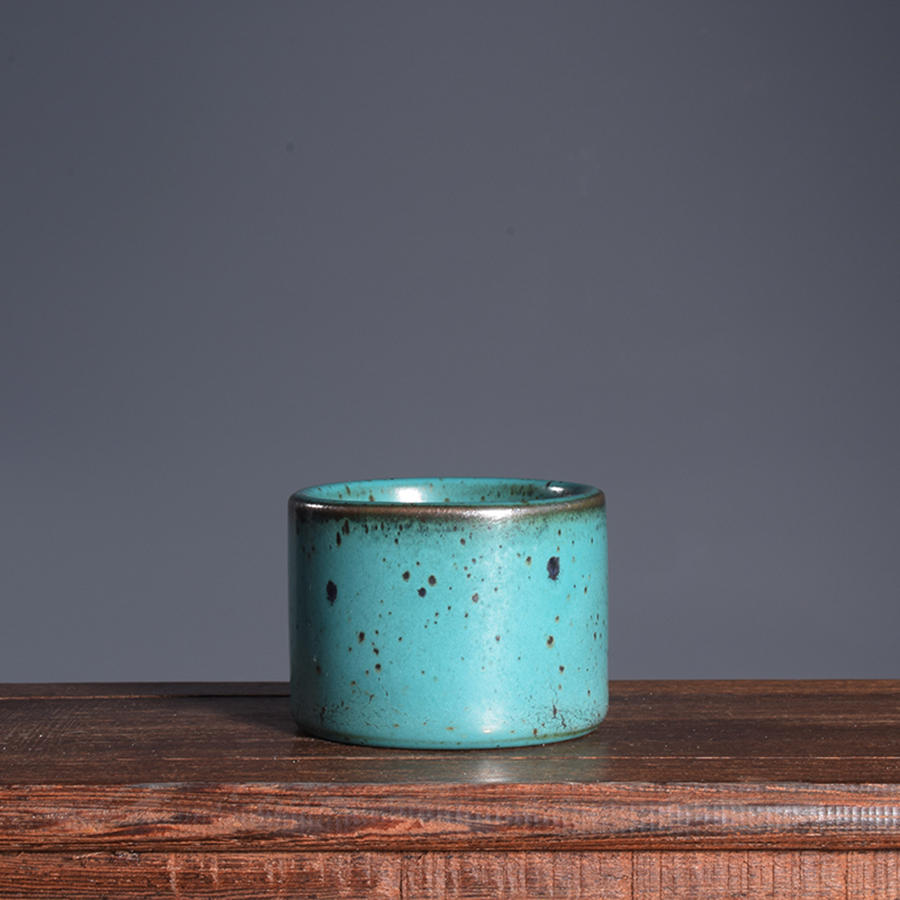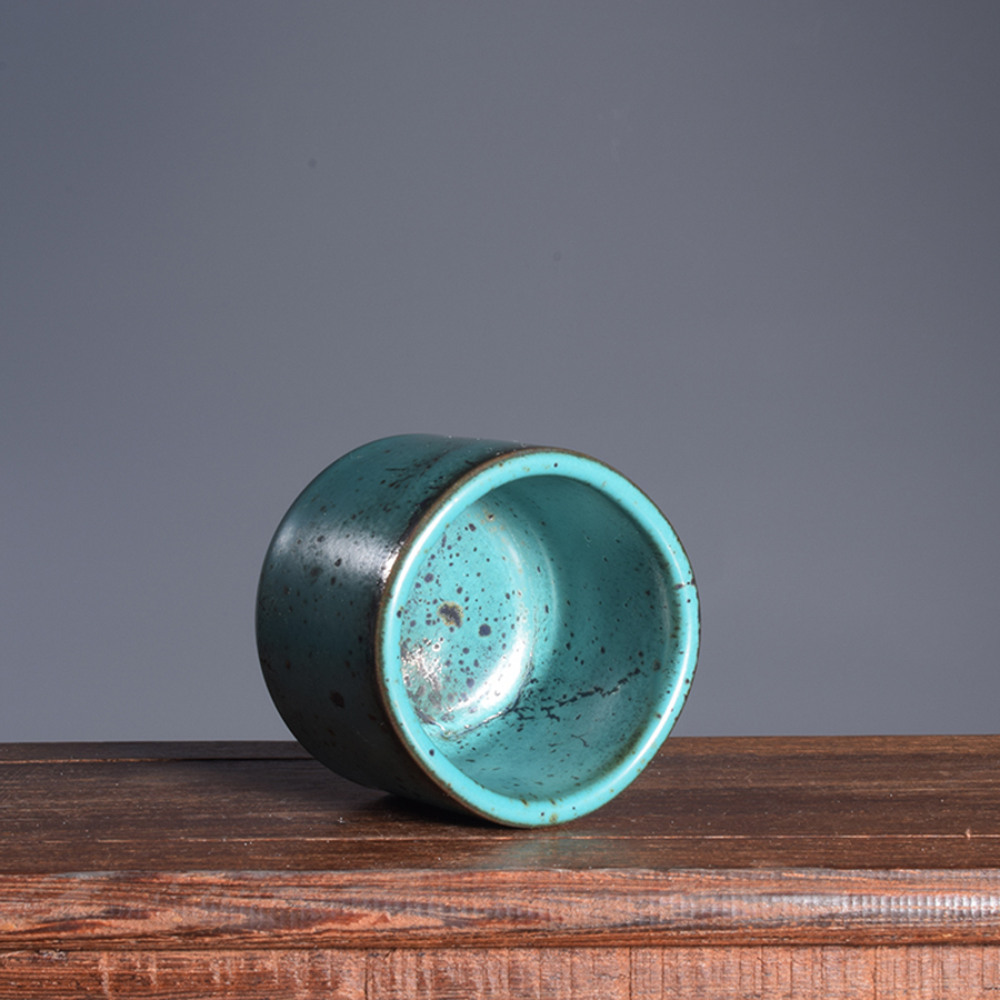 Its vivid turquoise glaze, dotted with subtle dark speckles (each mark unique, thanks to hand-dipping glazing techniques), brings a pop of ancient Eastern charm to your table. The smooth, glossy finish feels luxurious in hand, while the compact, sturdy shape is perfect for traditional Kung Fu tea ceremonies, morning coffee, or even as a tiny decorative vessel for your desk.