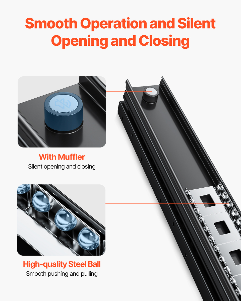 Silent Opening and Closing: Equipped with a silencer at the end to reduce noise during opening and closing. The high-quality spring and steel ball bearings ensure smooth sliding and seamless, stable closure