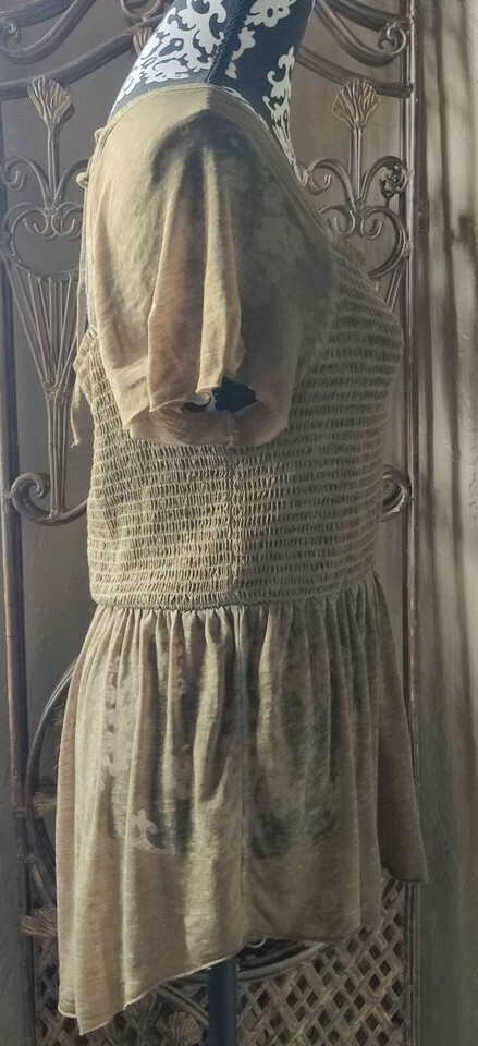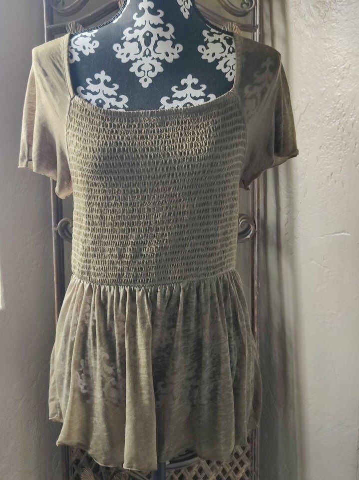 - VTG. Rewash Juniors Large Boho Green Smocked Flutter Sleeve High Low Burnout Top