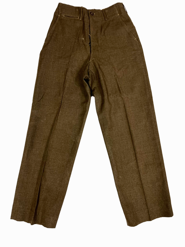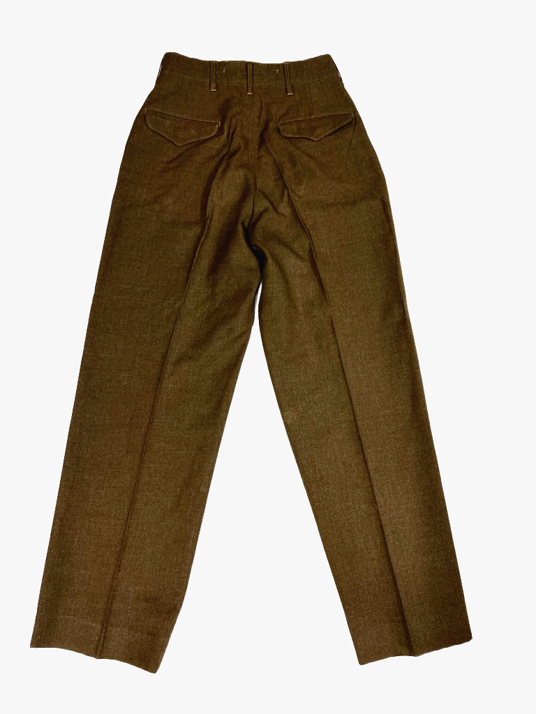 VTG WW2 Army Military Pants Wool Trousers Olive Green Button Fly 29x31 unused, no tags but you can see where they came off in front. Fantastic condition, no flaws, holes or stains, or wear.