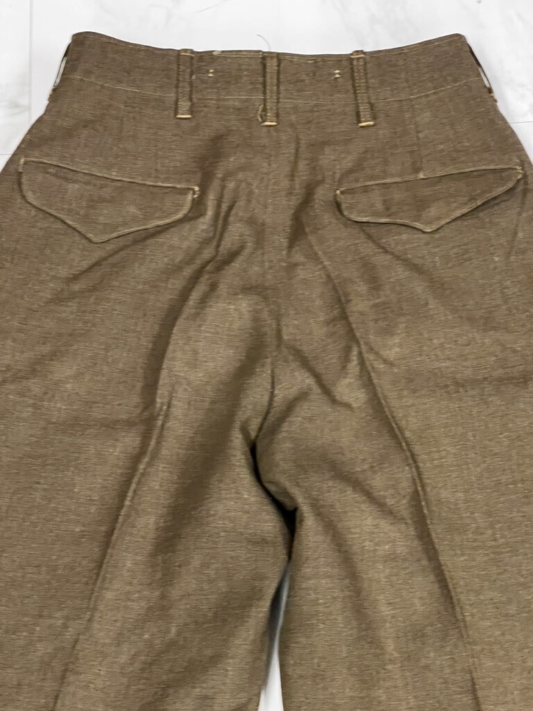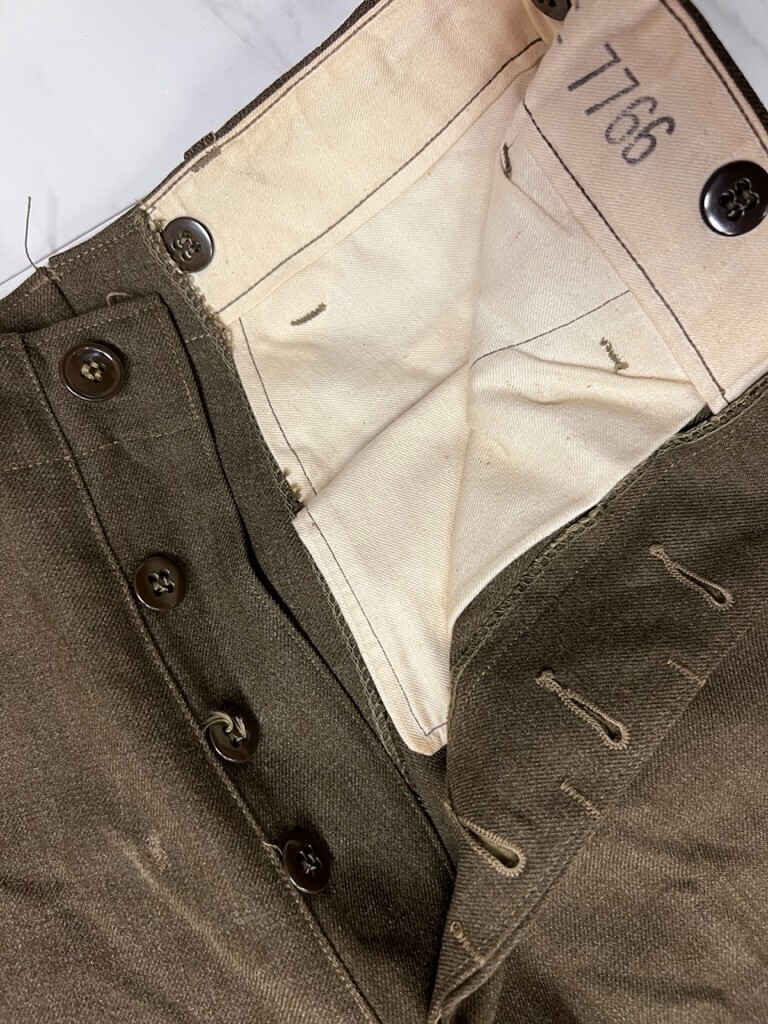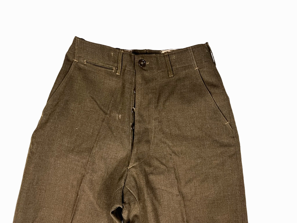 - VTG WW2 Army Military Pants Wool Trousers Olive Green Button Fly 29x31 unuse