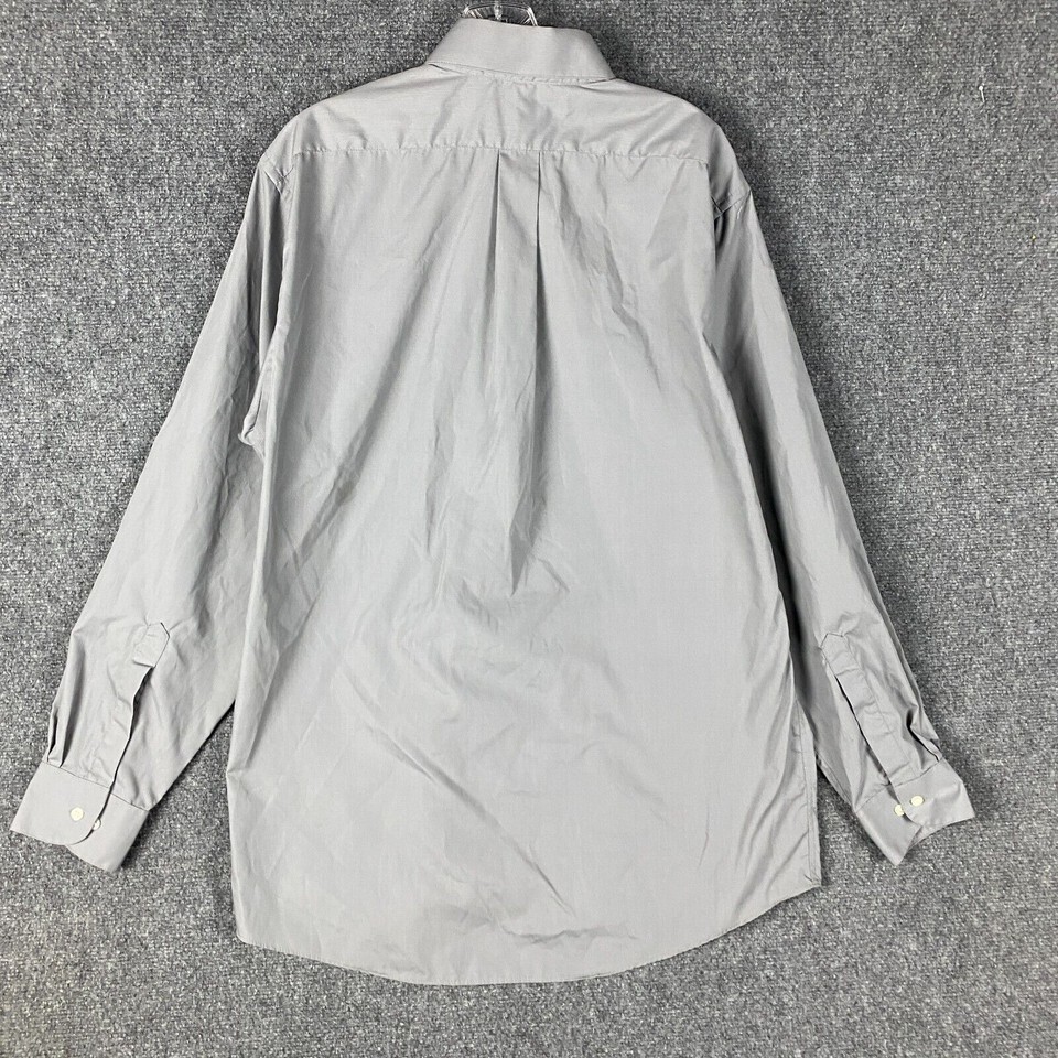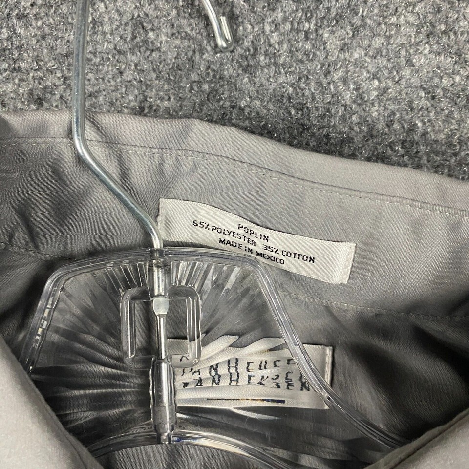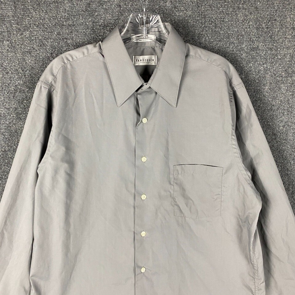 Van Heusen Button Up Shirt Men's Large Poplin 16 34/35 Gray Polyester Blend L
