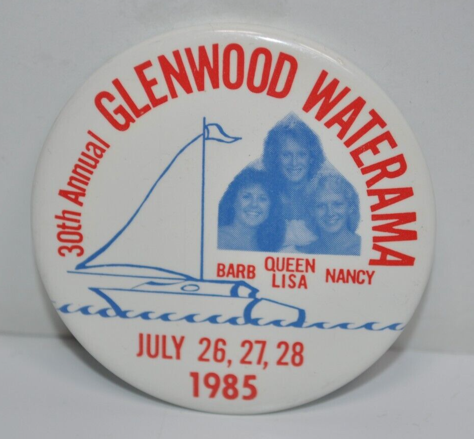 - Vintage 1985 30th Annual Glenwood Waterama 2-1/4" Pinback Button Pin