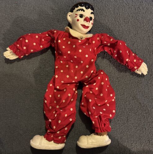 This is a rare find for collectors of vintage and retro items. The Clowno the Clown toy from the 1940s is an original piece that has been well-preserved over the years. It is a great addition to any collection of toys, especially for those interested in mid-century items. The clown toy is made in Europe and has a unique design that sets it apart from other toys of the time. It would make a great display piece or play toy for collectors and toy enthusiasts alike.