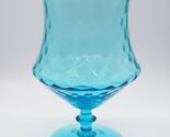 - Vintage blue art glass optic pattern footed compote with unusual shape