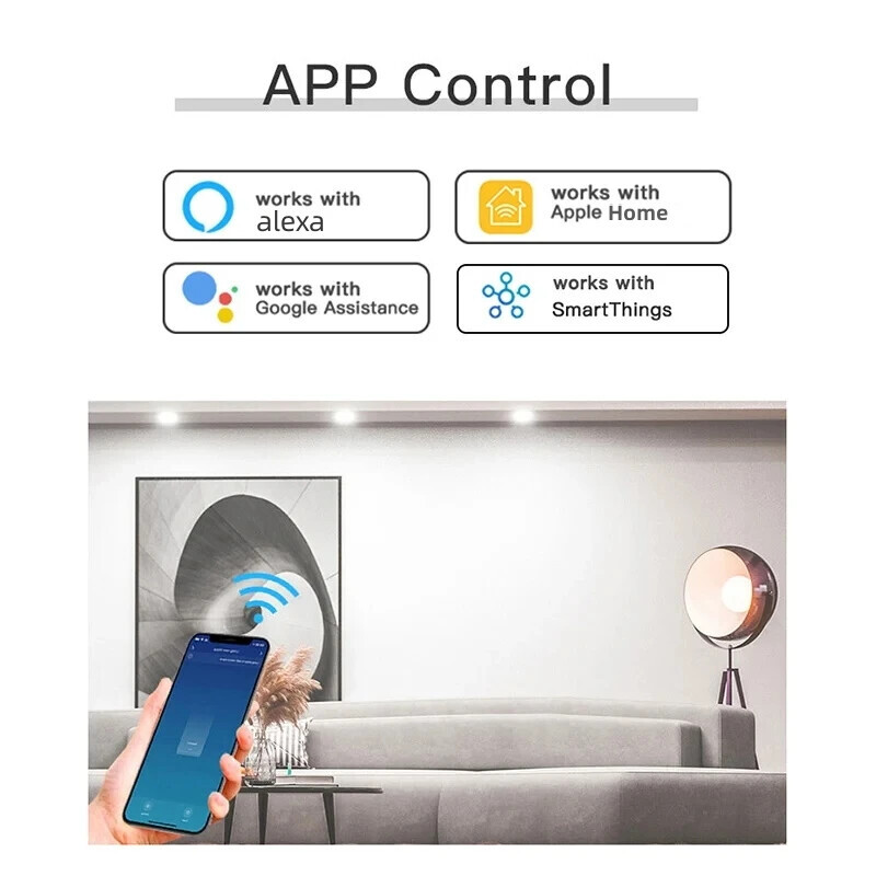 App control: Device control can be achieved through Alexa, Apple Home, Google Home, Smart things or