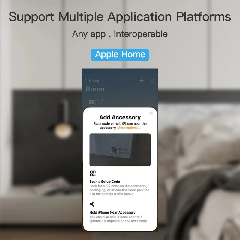 Device pairing: There is a Matter QR code and an 11-digit short code on each device. To bind a device,you can use the matching App to scan the QR code or enter the 11-digi.